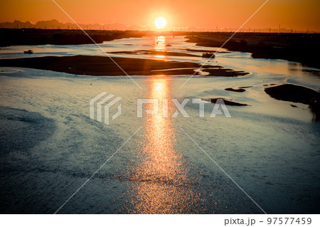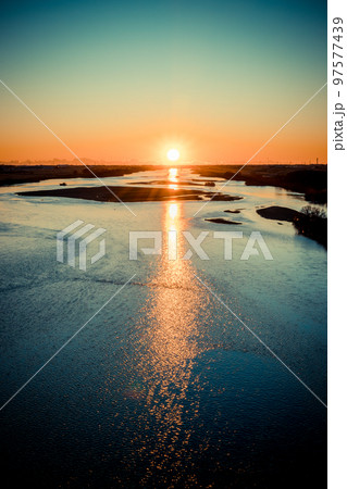 「埼玉県」利根川から昇る朝日・関東平野