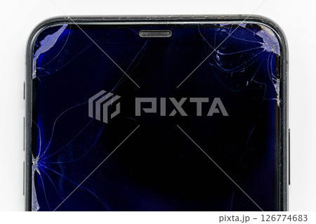 Smartphone with a broken screen.