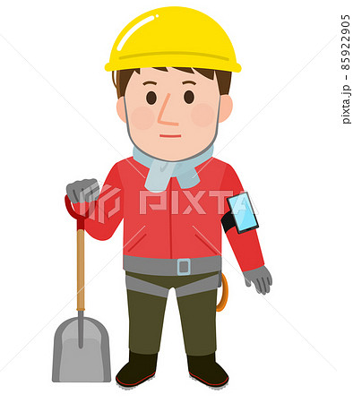 雪下ろし作業をする男性 安全な装備 イラスト