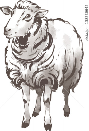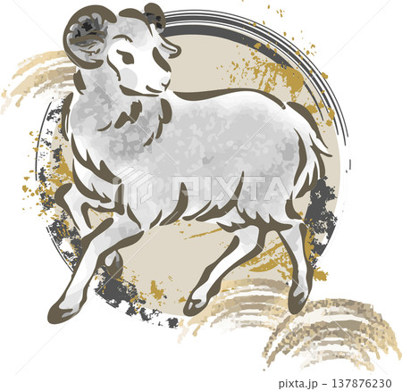 年賀2027 手描きの羊の水墨画、墨絵、水彩、未年の年賀状素材 イラスト デザイン アート