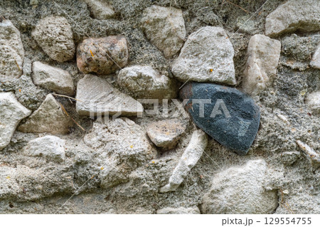 Unique textures and colors of a rugged stone wall blend harmoniously in natural surroundings
