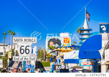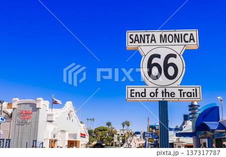 サンタモニカ・ピア ルート66の終点サイン ※一部ソフトフォーカス
