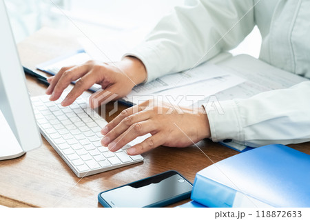 オフィスでパソコンのキーボードを操作するビジネスウーマン