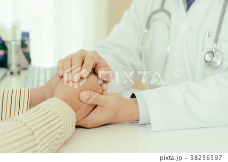 Doctor hands holding patient hand to encouragement