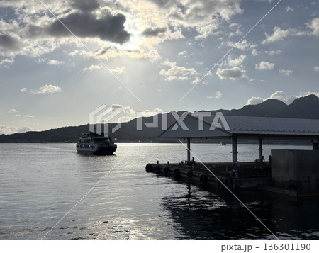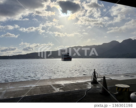 朝の瀬戸内海_宮島から来るJR西日本宮島フェリーみせん_宮島フェリー乗り場
