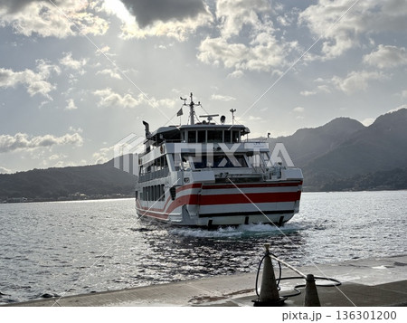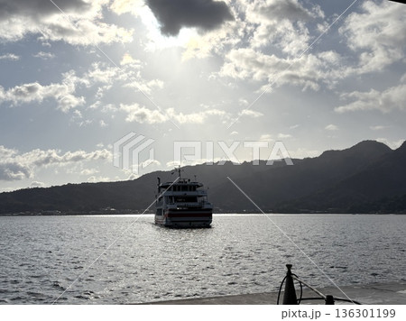 朝の瀬戸内海_宮島から来るJR西日本宮島フェリーみせん