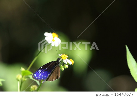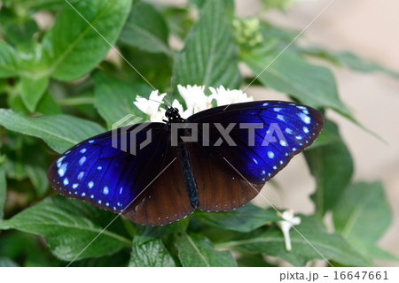 生き物 昆虫 ツマムラサキマダラ、コバルトブルーに星をちりばめた羽が美しい