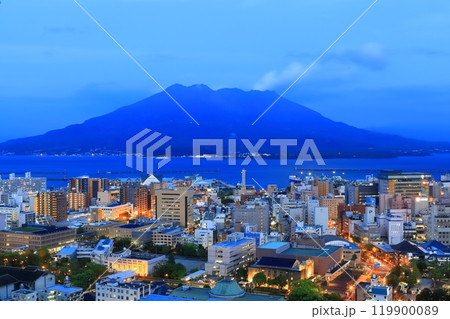 【鹿児島県】城山公園展望台から見た桜島と鹿児島市街地の夜景