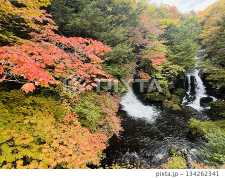 紅葉に包まれた竜頭ノ滝・Ryuzu lake surrounded by fall foliage