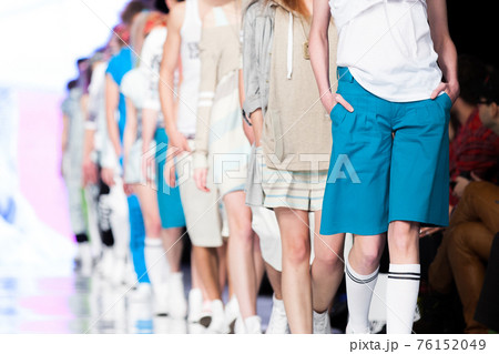 Fashion Show, Catwalk Runway Event, Fashion Week themed photograph. Models walking fashion show finale.