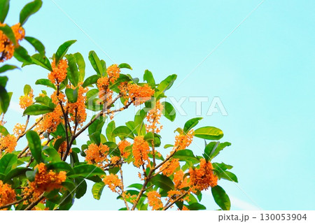 秋の景色 オレンジ色に色づいた芳醇な香りのキンモクセイ