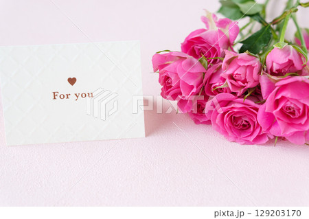 バラの花束と「for you」のメッセージカード