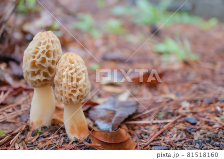 Set of Morel mushroom showing its textured cap and stem isolated on a white background.