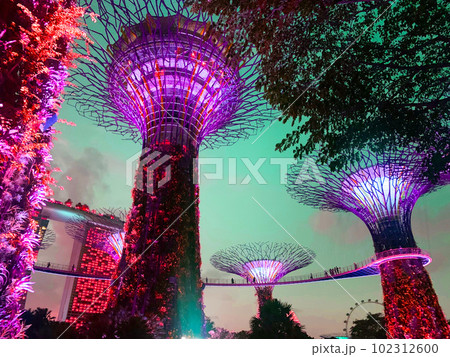 Supertree Grove light up in Garden by the bay, Singapore