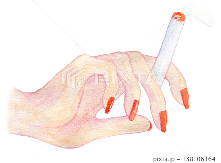 水彩イラスト 手描きイラスト タバコを持つ女性