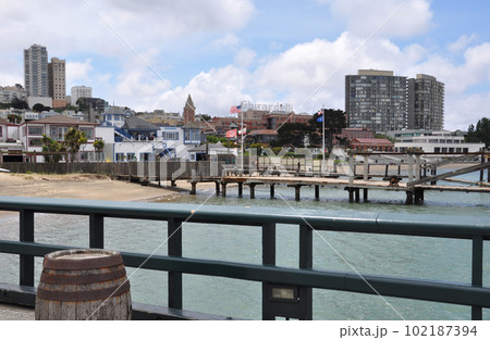 サンフランシスコの人気スポット、ハイド ストリート ピアからの風景。ギラデリの大きな看板が見える