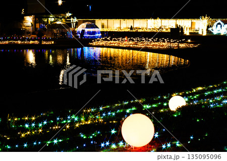 イルミネーション 夜景 光の反射 水辺の風景 幻想的