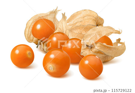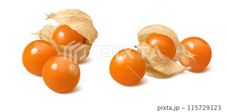Physalis or golden berries isolated on white background. Double group. Package design element