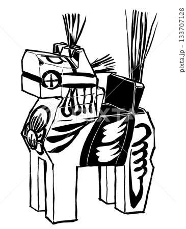 伝統工芸品の三春駒の白駒 版画風・白と黒