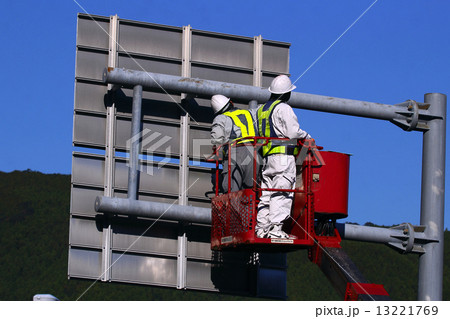 橋梁の補修工事 橋梁点検車で足場組立て作業風景