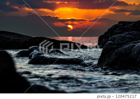 <夜明けの風景>五島市鐙瀬の夜明け波飛沫