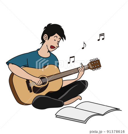 音楽家 ギター 弾き語り マイク ミュージシャン イラスト