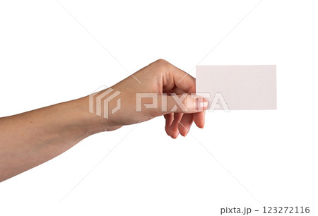 Female hand holding white card.