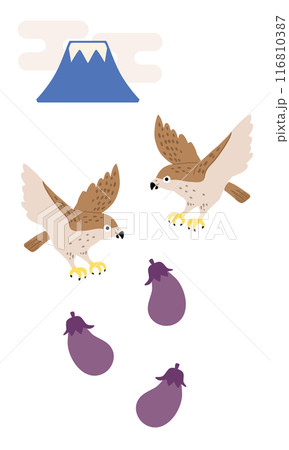 正月 初夢 富士山 鷹 茄子 イラスト素材