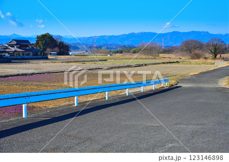 六堰としげただばより上流秩父山並み 田園風景 深谷市