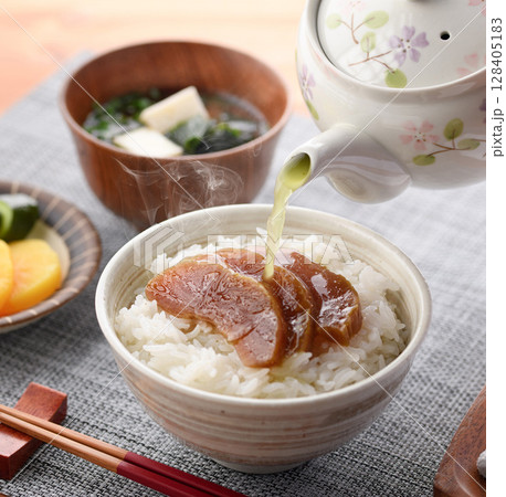 奈良漬けをご飯にのせたお茶漬けと和朝食セット