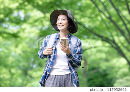 ハイキングを楽しむミドル女性