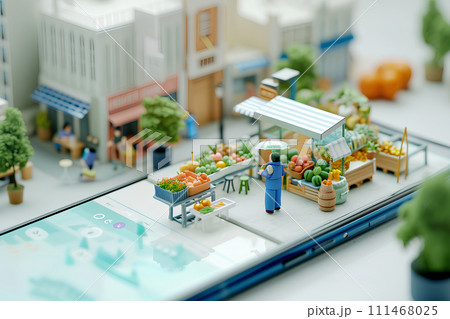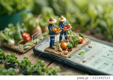 スマホの上の野菜売り場