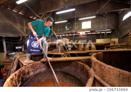 木桶仕込みで味噌醤油を作る醸造元の職人 伝統製法 蔵元 イメージ