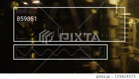 Displaying data overlay in plant with pipes and gears, bar and waveform graphs and text annotations
