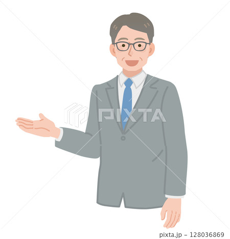 案内をする若いビジネスマンのシンプルなベクターイラスト素材