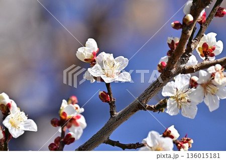【花素材】大王わさび農場の紅梅と青空【長野県】