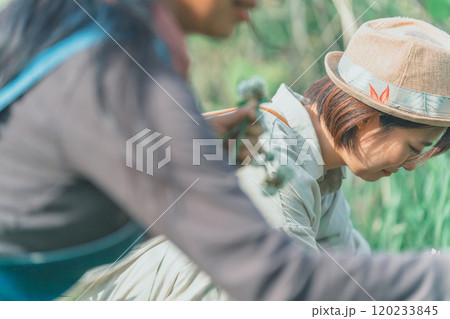 植物の手入れをする女性の写真