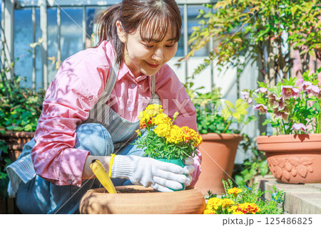 花を植える女性 ガーデニング