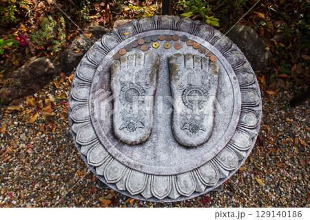 Buddha footprint sculpture in Hase dera temple in autumn, Sakurai, Nara