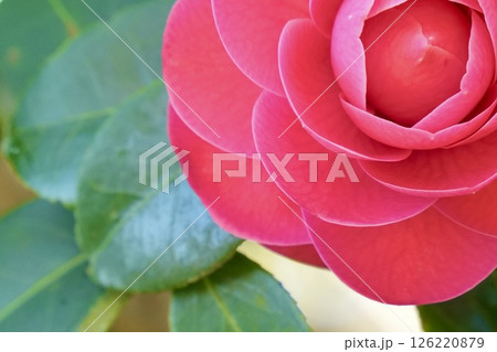 美しい椿の花 クローズアップ 光注ぐ