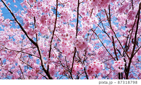 大津 皇子が丘公園 青空に映える満開のハツミヨザクラ