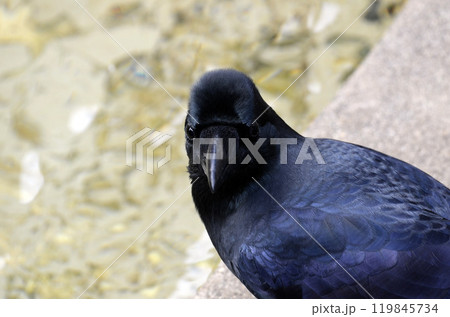 水辺にたたずむハシブトガラス