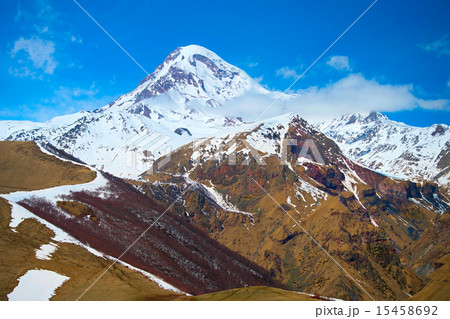 ジョージア(グルジア)側から眺める大コーカサス山脈のカズベク山