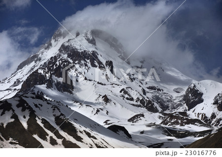 Georgia. Peak Of Mount Kazbek Covered With Snow