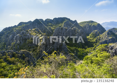 タイ中南部の大地と石灰岩の山並み 眺望 / Kuiburi, Thailand