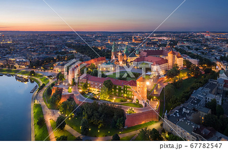 Aerial view of Wawel Castle in Krakow, Poland