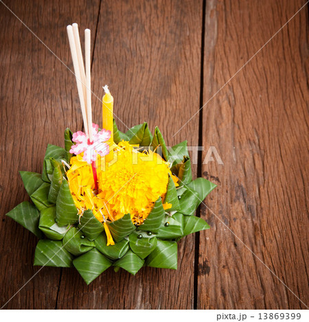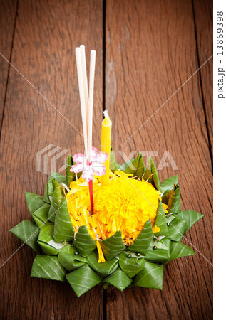 Loy Krathong festival, People buy flowers and candle to light and float on water to celebrate the Loy Krathong festival in Thailand