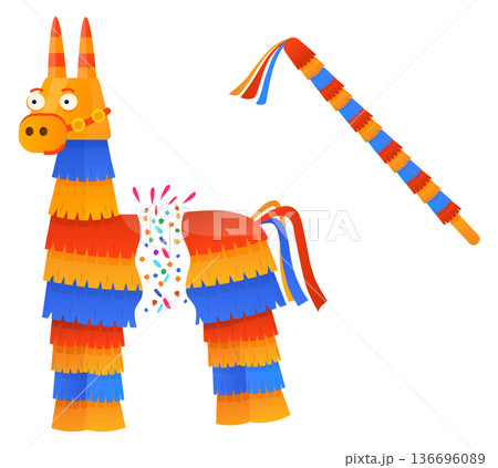 Broken pinata lama with falling candy. Party game