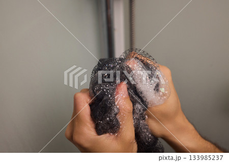 商品背景 浴室タイルの雲のようなきめの細かい洗顔泡