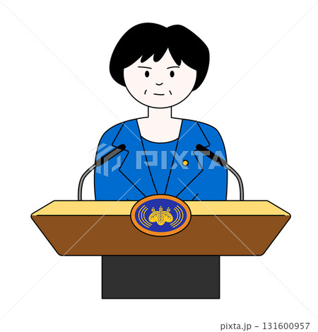 内閣総理大臣(女性)の会見のイラスト